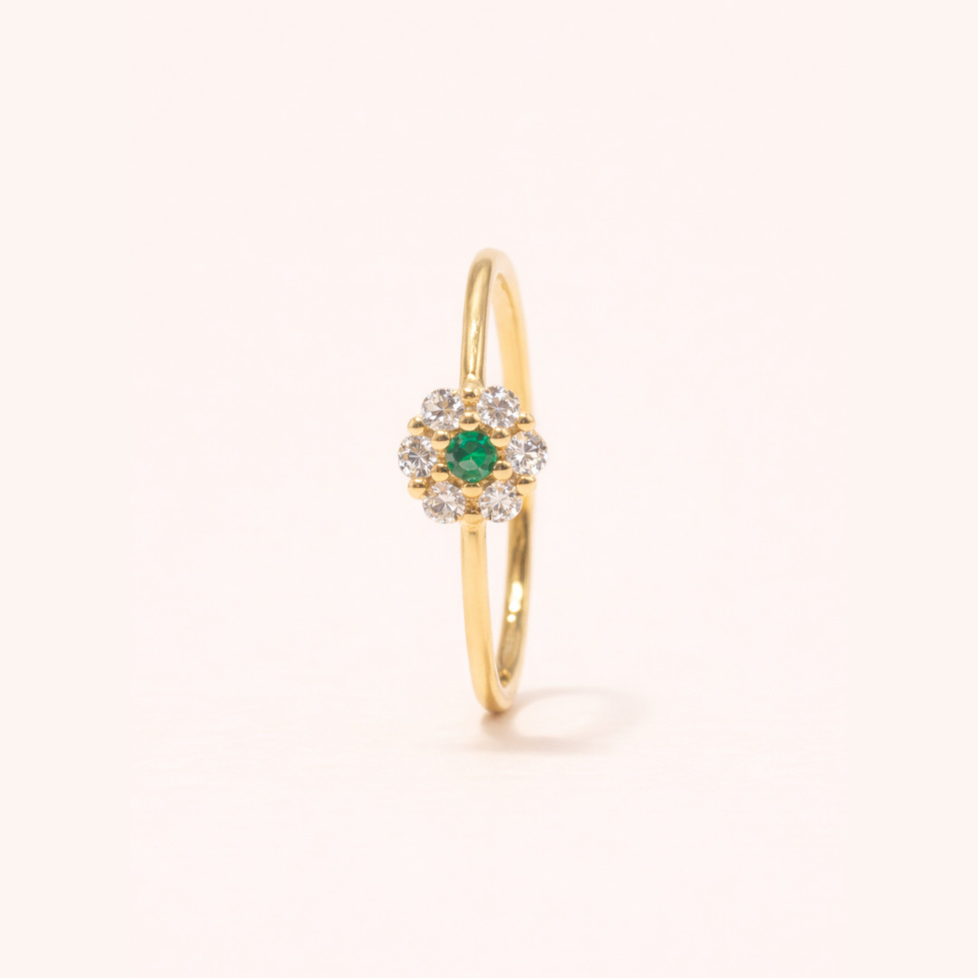 Bracelet cristaux vert et blanc en forme de fleur, plaqué or