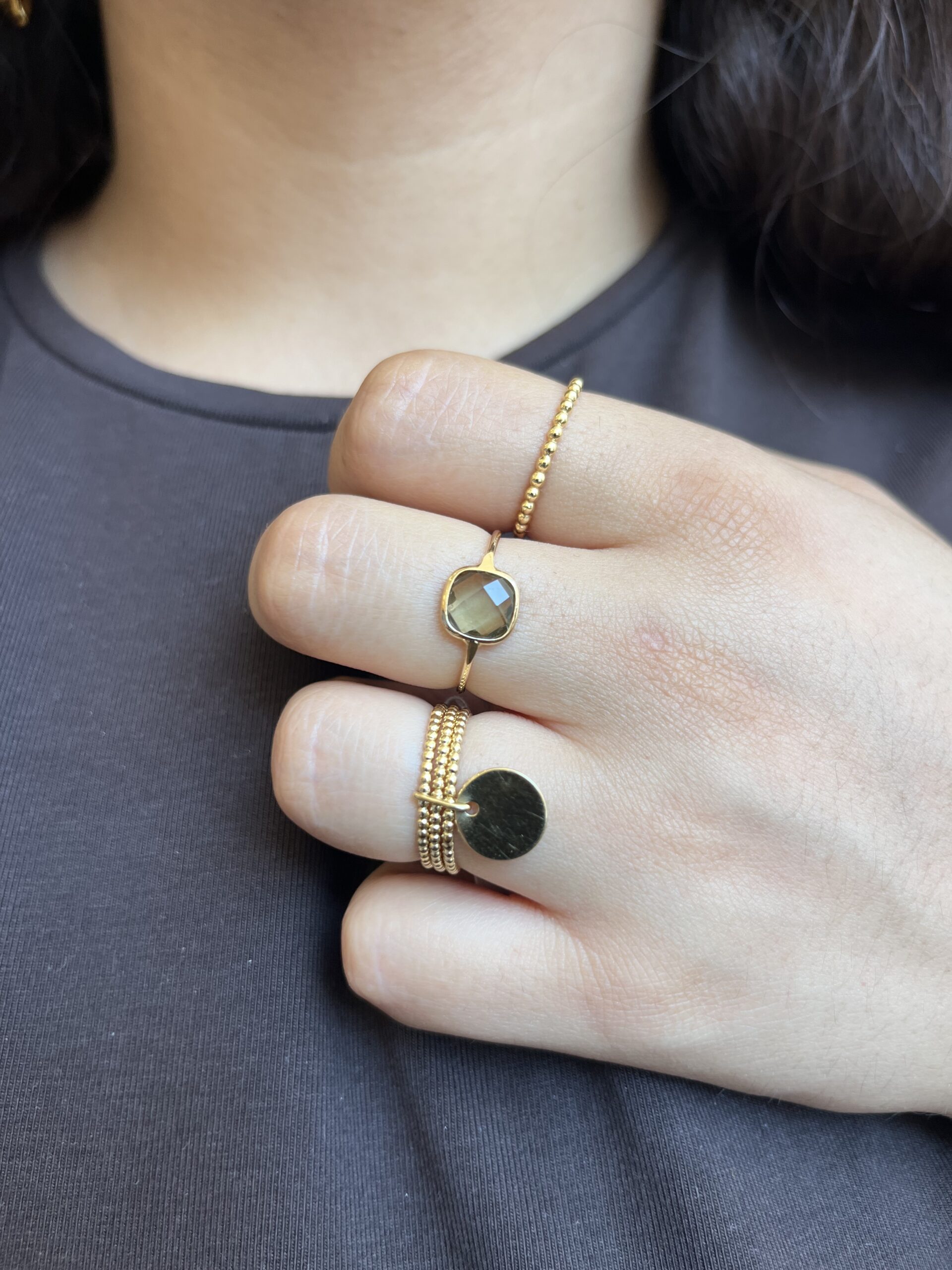 Bague pierre Kaki. Bague en plaqué or et son cristal carré kaki