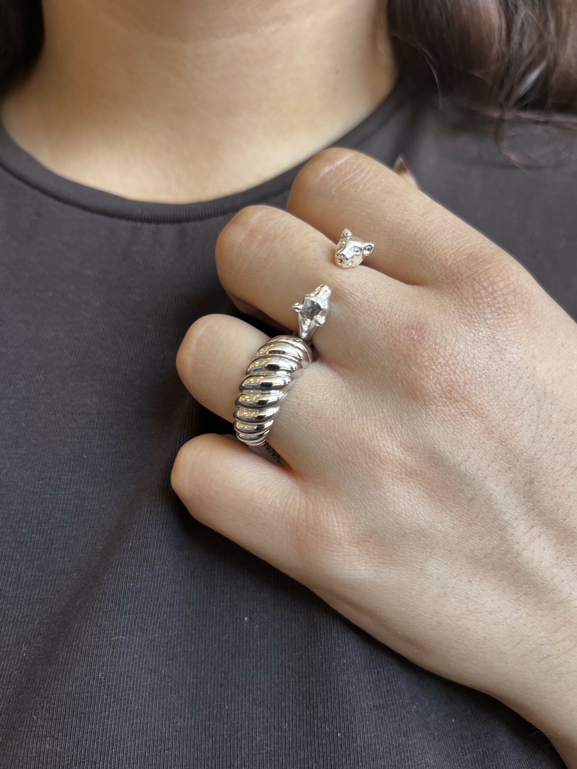 Bague tètes de panthère, modèle en argent 925