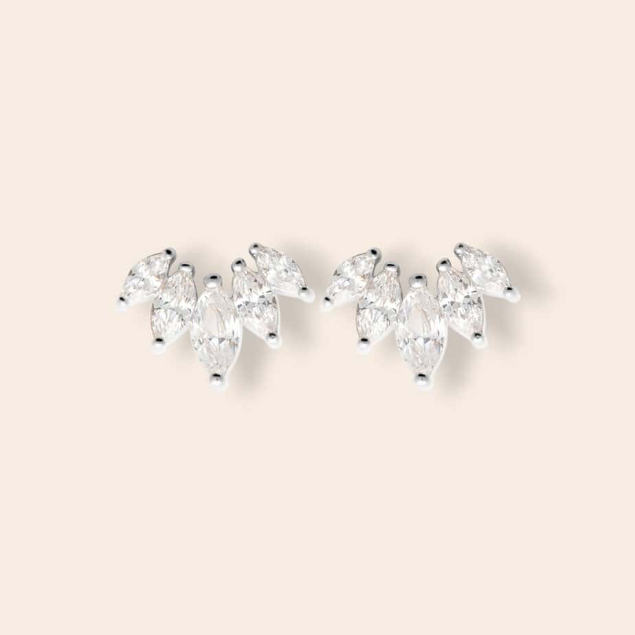 Boucle 5 cristaux navette serti griffe en plaqué or cristaux blanc