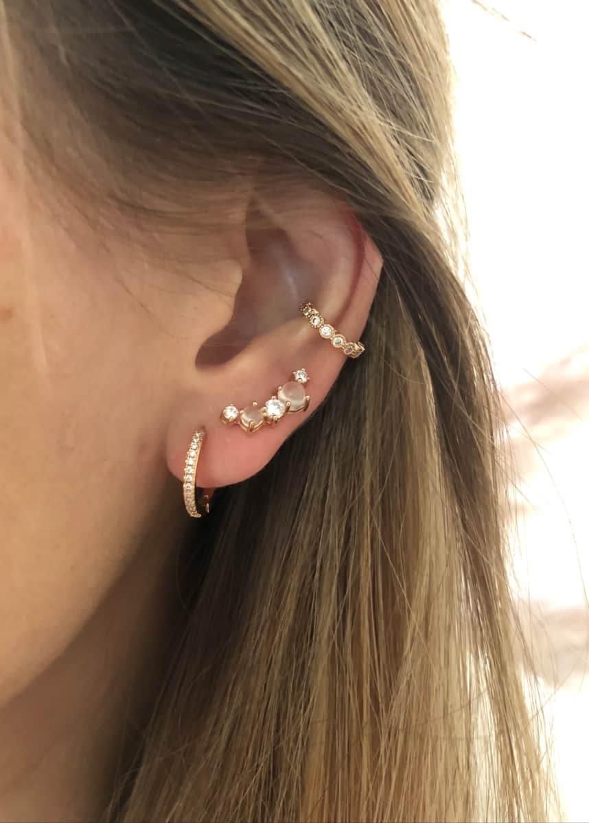 Mono Boucle hélix Charline en plaqué or avec oxydes de zirconium.