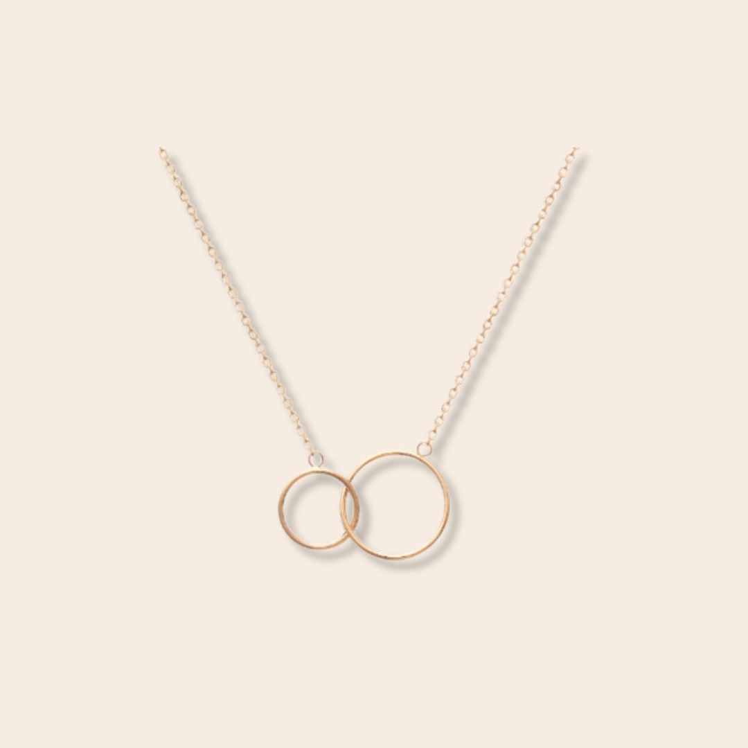 Collier double cercle doré en plaqué or, collier cercles entrelacés