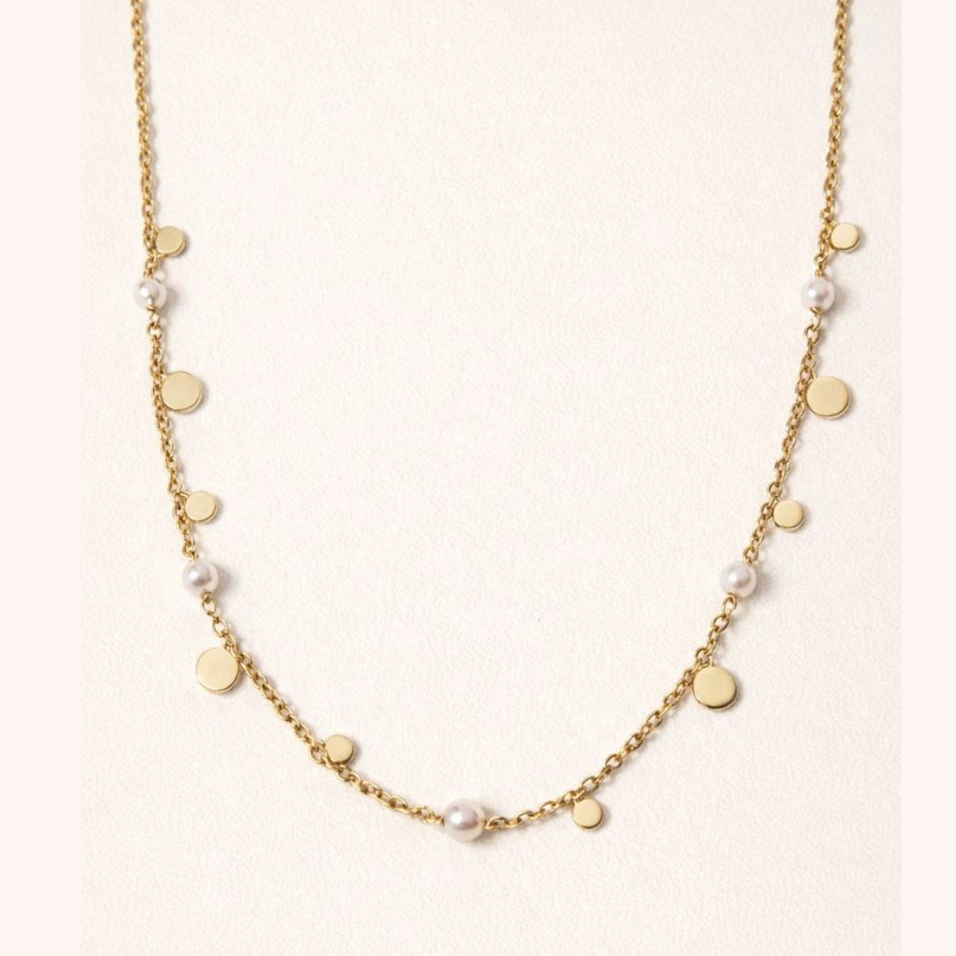 Collier pastille et perle blanche en plaqué or,