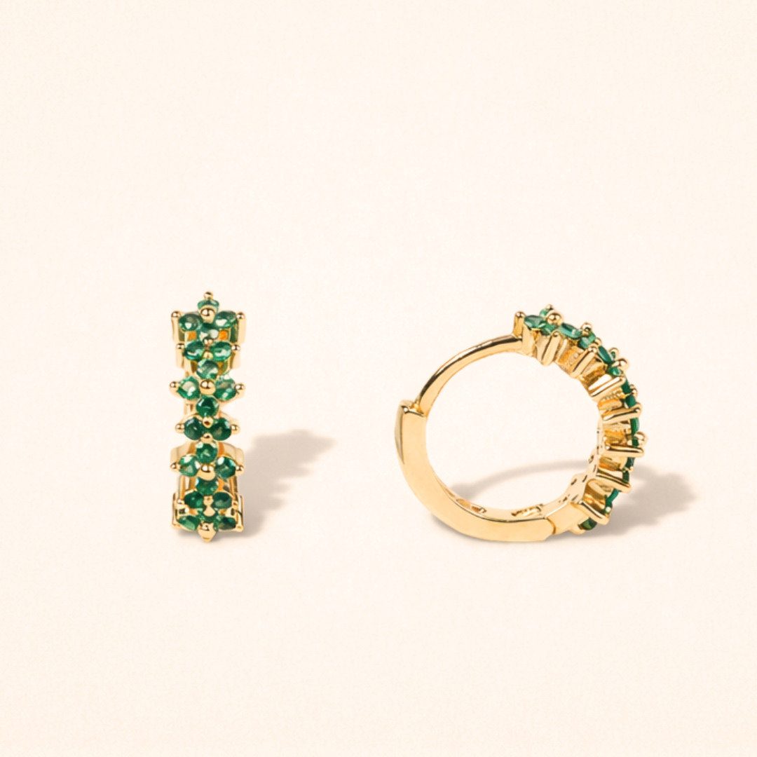 Créoles multi cristaux vert en fleur, plaqué or .