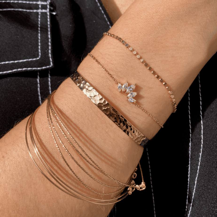 - Assurez-vous que la taille est adaptée : Les bijoux qui ne sont pas à la bonne taille peuvent donner une impression d’inconfort et de maladresse. Les colliers doivent être suffisamment longs pour s’adapter à la forme de votre cou, les bracelets doivent être suffisamment larges pour ne pas glisser, et les boucles d’oreilles ne doivent pas être trop lourdes pour éviter de tirer sur les lobes d’oreilles.
